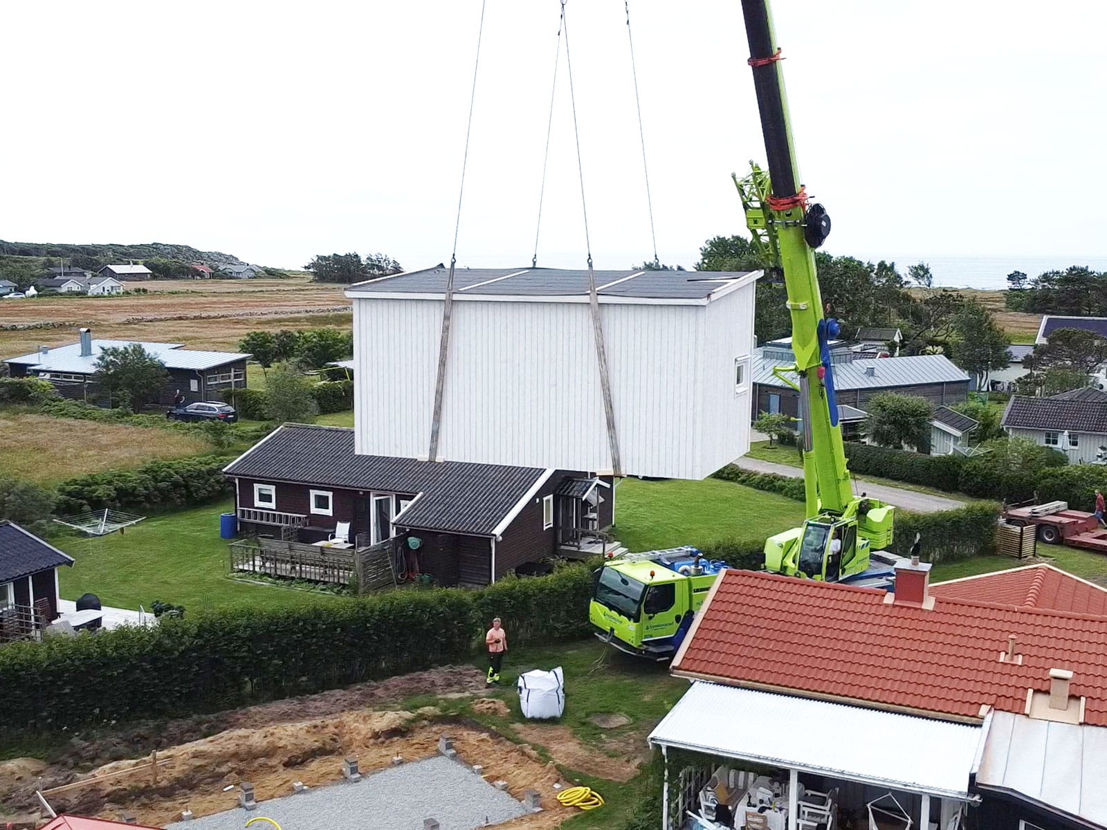 Denna variant innebär att hela utsidan av huset är komplett och färdigbyggt i fabrik. Huset levereras på lastbil och lyfts i sin helhet på plats på din tomt. Lösningen är smart och du får ett torrt skal där du själv kan färdigställa insidan precis som du vill. Priset blir därför mycket attraktivt och är ofta samma som byggsatserna, men du slipper allt arbete med att montera ihop husets yttre. Läs mer om attefallshus som skalhus.