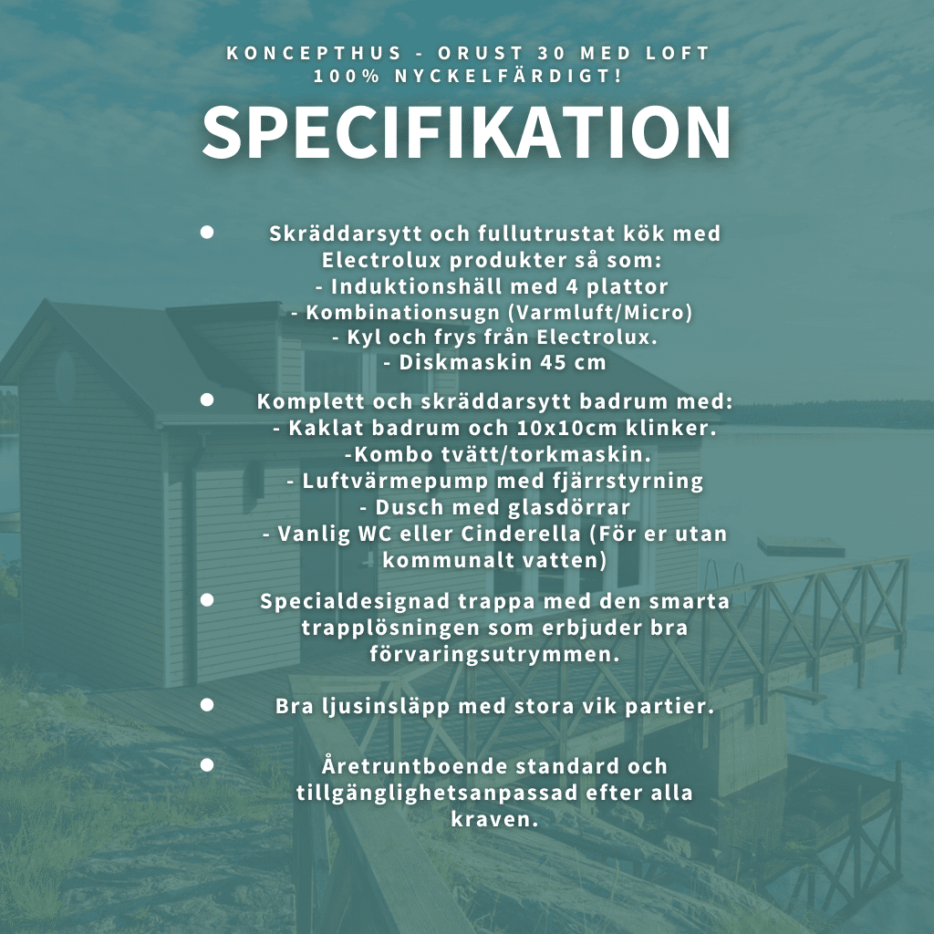 Koncepthuset – Kundens val är perfekt för dig som vill ha ett komplett Attefallshus 30 kvadratmeter med loft för ett super bra pris och en super snabb leverans. Först till kvarn.”