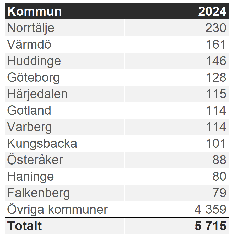 Kommentar: Störst förändring under 2023 skedde i Skellefteå som tappade  kraftigt från 499 år 2022 till enbart 66 st under 2023.